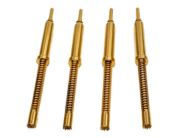 結構設計特點:大電流場景下,電流產(chǎn)生的電磁力和發(fā)熱可能導致探針變形或接觸松動,因此結構設計需滿足機械穩(wěn)定性和壓力一致性。探針內(nèi)部通常包含彈簧,如鈹銅彈簧,通過預壓縮提供穩(wěn)定的接觸壓力,探針外殼采用高強度材料,如不銹鋼,避免大電流產(chǎn)生的磁流路徑的穩(wěn)定性。