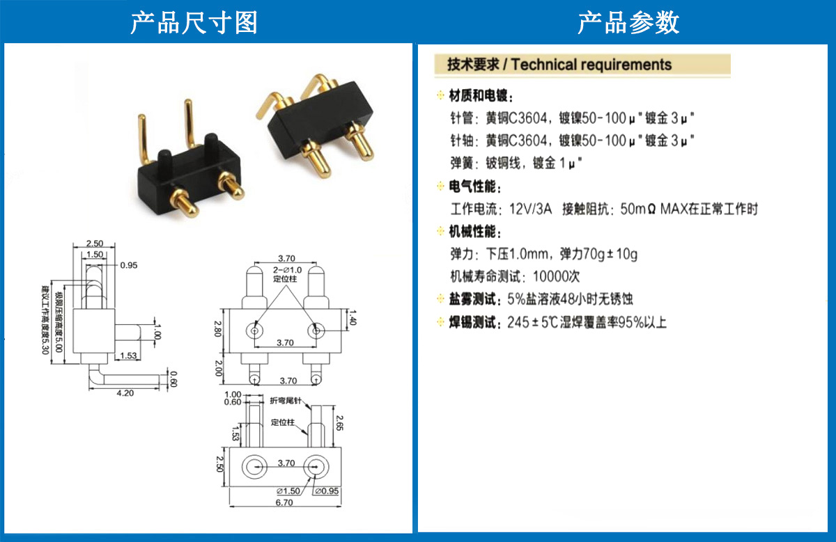 產(chǎn)品介紹:這個針通常用于智能手表,藍(lán)牙耳機(jī)上的有充電的功能,但是探針總體來說還是測試的