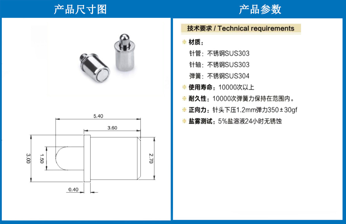 3.0*5.4電極針 當(dāng)前位置:首頁 » POGO PIN充電彈簧頂針 » 電極針