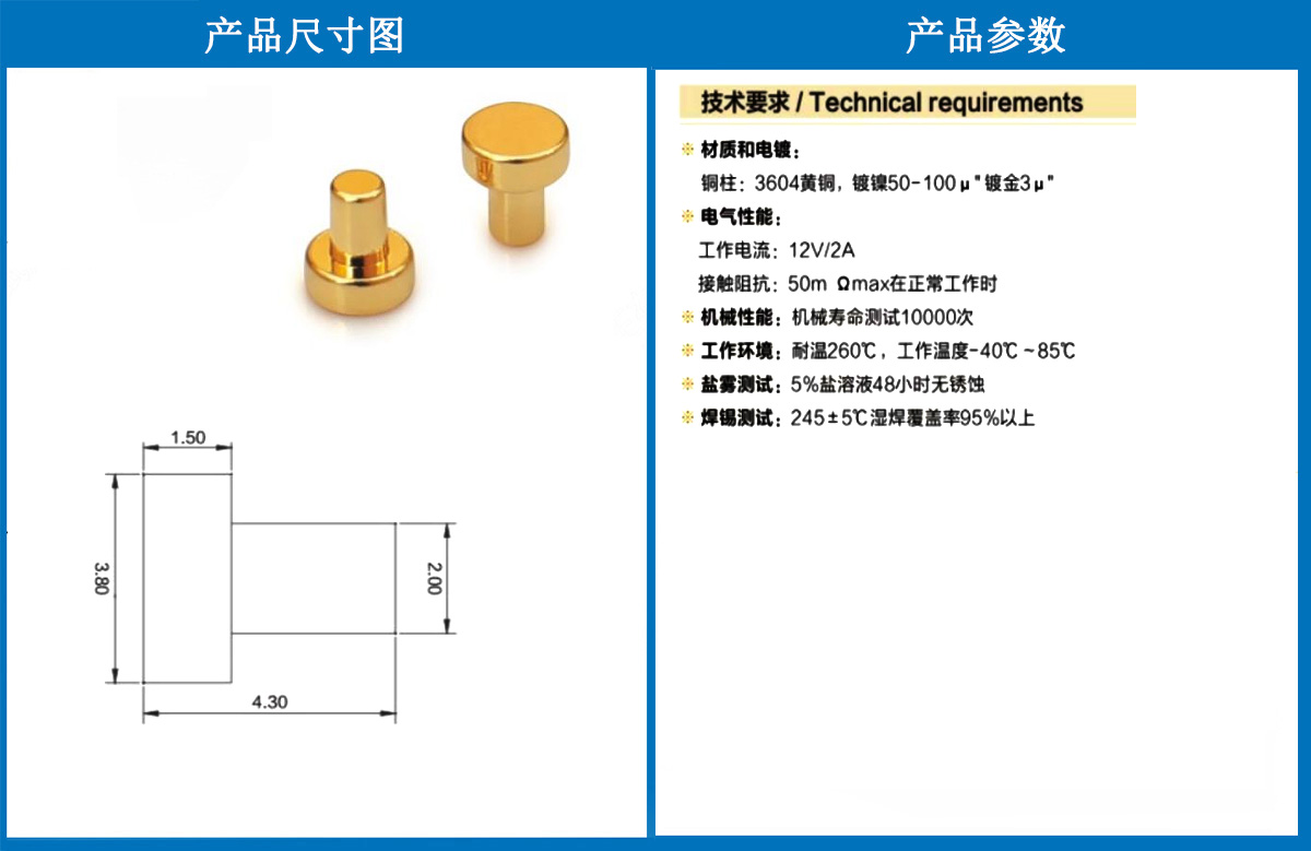 產(chǎn)品型號(hào):3.8*4.3銅柱