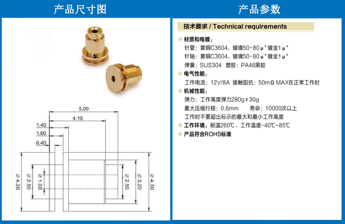 4.30*5.0電極針 當(dāng)前位置:首頁 » POGO PIN充電彈簧頂針 » 電極針