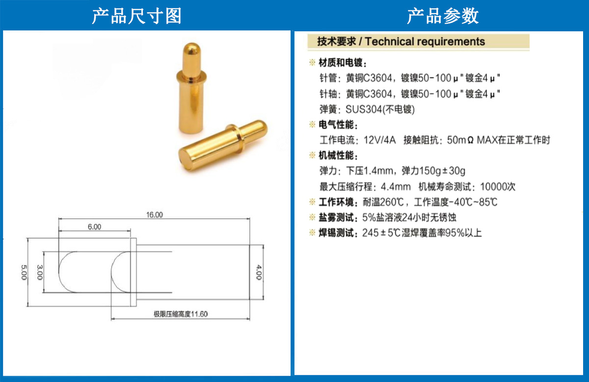 產(chǎn)品介紹:這個(gè)針通常用于智能手表,藍(lán)牙耳機(jī)上的有充電的功能,但是探針總體來(lái)說(shuō)還是測(cè)試的