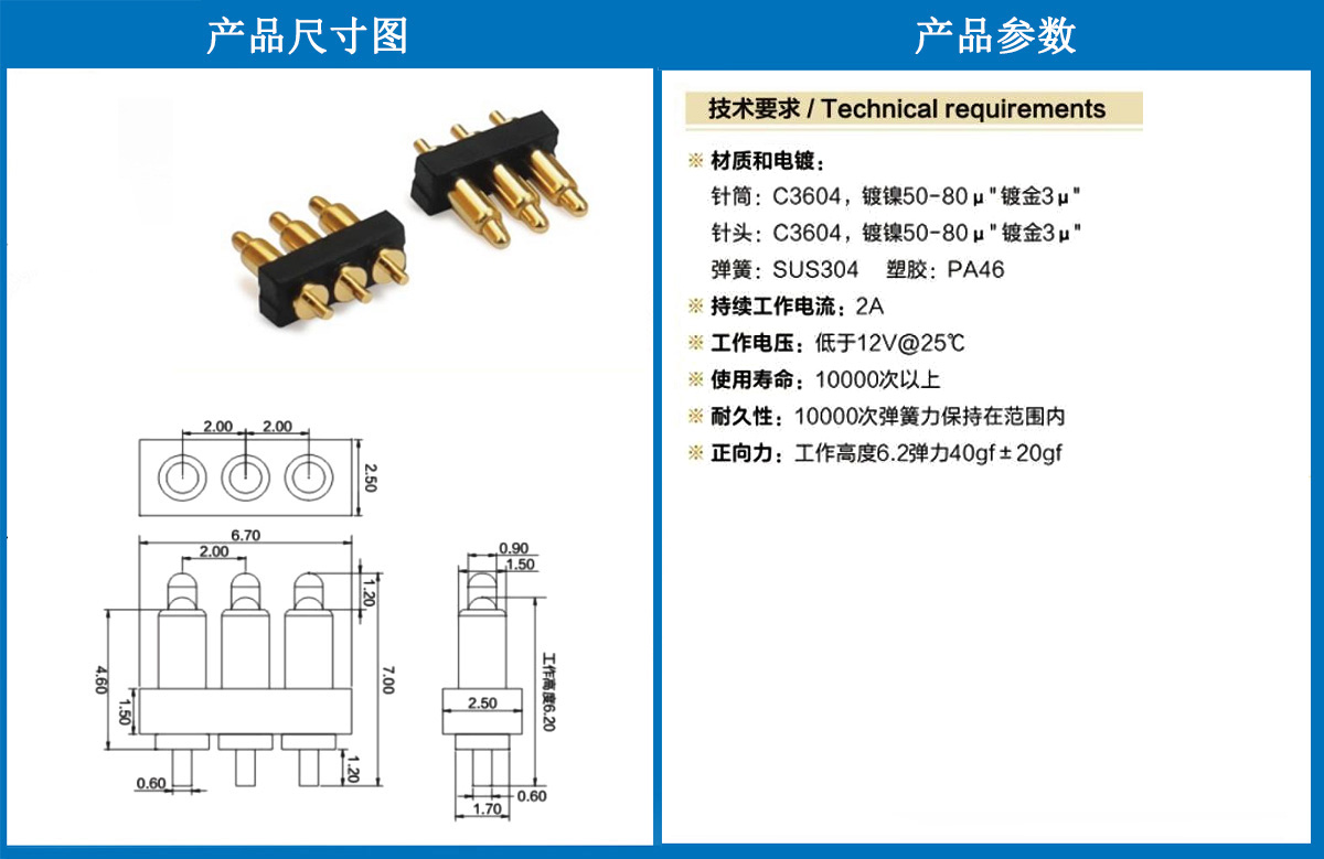 產(chǎn)品介紹:這個(gè)針通常用于智能手表,藍(lán)牙耳機(jī)上的有充電的功能,但是探針總體來(lái)說(shuō)還是測(cè)試的