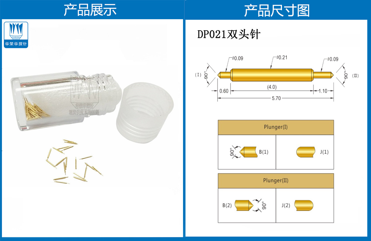 產(chǎn)品頭型:探針外徑為0.21mm,總長度為5.7mm
