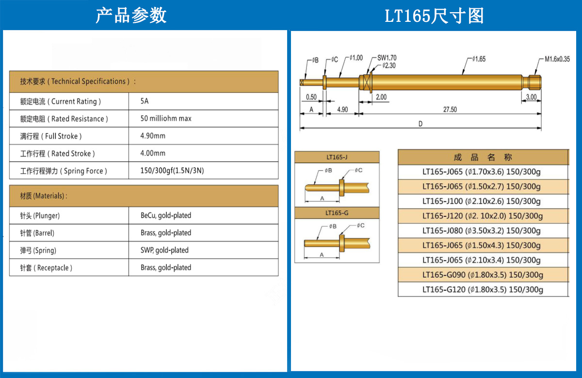 產(chǎn)品介紹:本產(chǎn)品一般用有定向作用的結(jié)束測試用,產(chǎn)品選用日本SK4 彈簧選用的是琴鋼線。工廠選用的材質(zhì)都是比較硬的,有利于在測試的時候過大電流不會容易損壞。