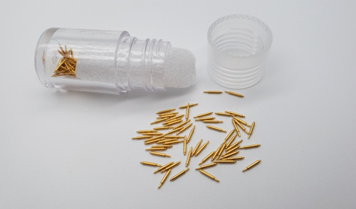 隨著社會的不斷科技化,人們的生活水平也不斷的提高,手機、電腦、汽車、智能手表等也不斷的普及,對探針的需求也越來越大! 探針是電測試的接觸媒介,為高端精密型電子五金元器件。它在各個領域都有應用,例如在醫(yī)療、航空航天、生物、計算機等領域都有的應用。而不同型號的探針,所用的材質及價格也會不同。探針的材質主要有鈹銅、磷銅、黃銅、SK4、等,今天主要給大家講解一下探針表面為什么要進行鍍金處理? 簡單來說,鍍金就是為了防止銅生銹,生銹之后產生的銅綠會增加電阻,探針的穩(wěn)定性及使用功能也會受到影響。 一、鍍金的好處: 1.鍍金層延展性好、易拋光、耐高溫,具有很好的抗變色性能。在銀層上鍍金可以防止銀的變色;金合金鍍層可呈現(xiàn)多種色調,故常用作裝飾性鍍層,如鍍首飾、鐘表零件、藝術品等。 2.鍍金具有較低的接觸電阻、導電性能良好、易于焊接、耐腐蝕性強、并具有一定的耐磨性(指硬金),因而在精密儀器儀表、